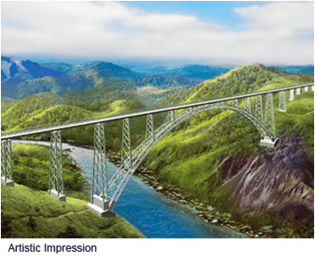 metre-long trussed arch span. It stands 359 metres above the river Chenab and has a 650 m long viaduct on the